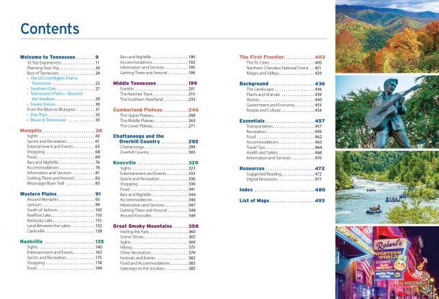 • Strategic, flexible itineraries, from a long weekend in Nashville to a Great Smokies road trip, plus day trips from Memphis and Nashville